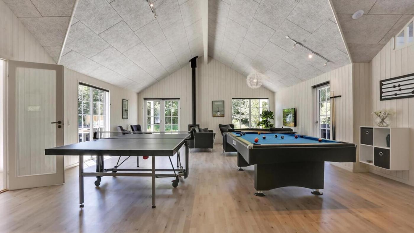 Nine-Bedroom Holiday Home. Guests will have a special experience as this holiday home features a private pool, a sauna and a fireplace. The spacious holiday home offers a washing machine, a tea and coffee maker, as well as a private bathroom featuring a bath and a shower. Guests will find a stovetop, an oven and a microwave in the kitchen. The holiday home also has a barbecue. This holiday home features a seating area, a wardrobe, a TV and a terrace. The unit offers 13 beds.