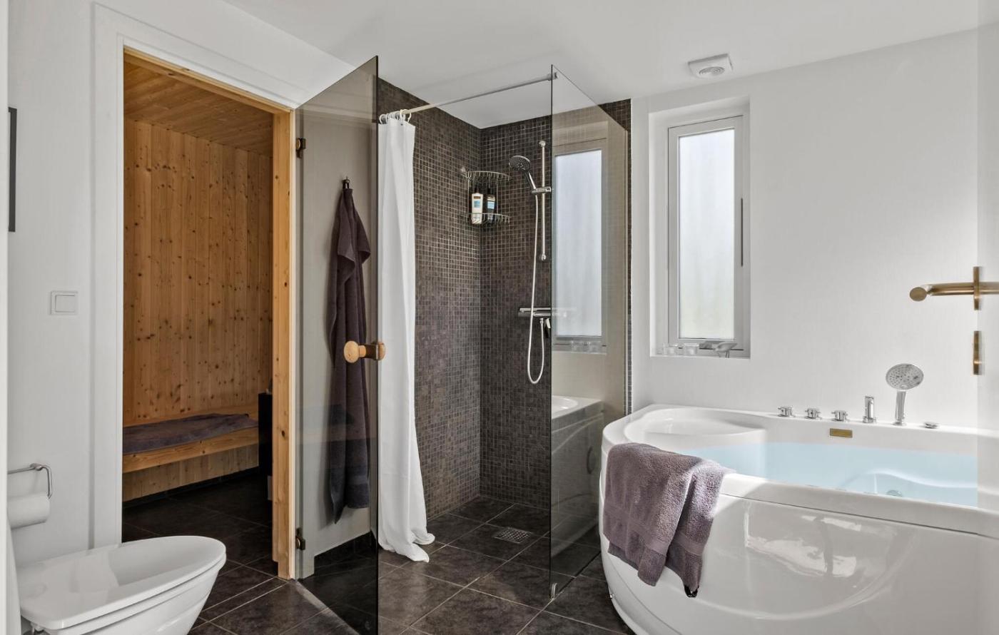 Three-Bedroom Holiday Home. This luxurious holiday home has a hot tub, a sauna and a fireplace. Featuring a private entrance, this holiday home comprises 1 living room, 4 separate bedrooms and 2 bathrooms with a shower. Guests will find a stovetop, a refrigerator, a dishwasher and kitchenware in the kitchen. The holiday home also provides guests with a barbecue. This holiday home features a washing machine, a tea and coffee maker, a TV with cable channels and outdoor furniture. The unit offers 3 beds.
