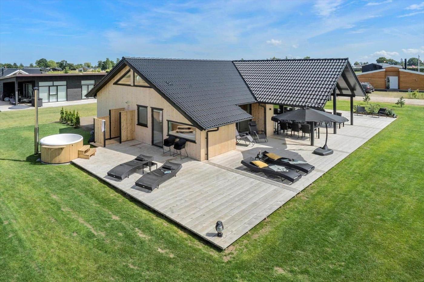 Holiday Home. The hot tub is a top feature of this holiday home. This spacious holiday home comes with 4 bedrooms, kitchen, a terrace and 2 bathrooms with a shower. Guests will find a refrigerator, a dishwasher, an oven and a microwave in the fully equipped kitchen. The holiday home also includes a barbecue. This holiday home has a washing machine, a tea and coffee maker, a TV and outdoor furniture. The unit has 8 beds.