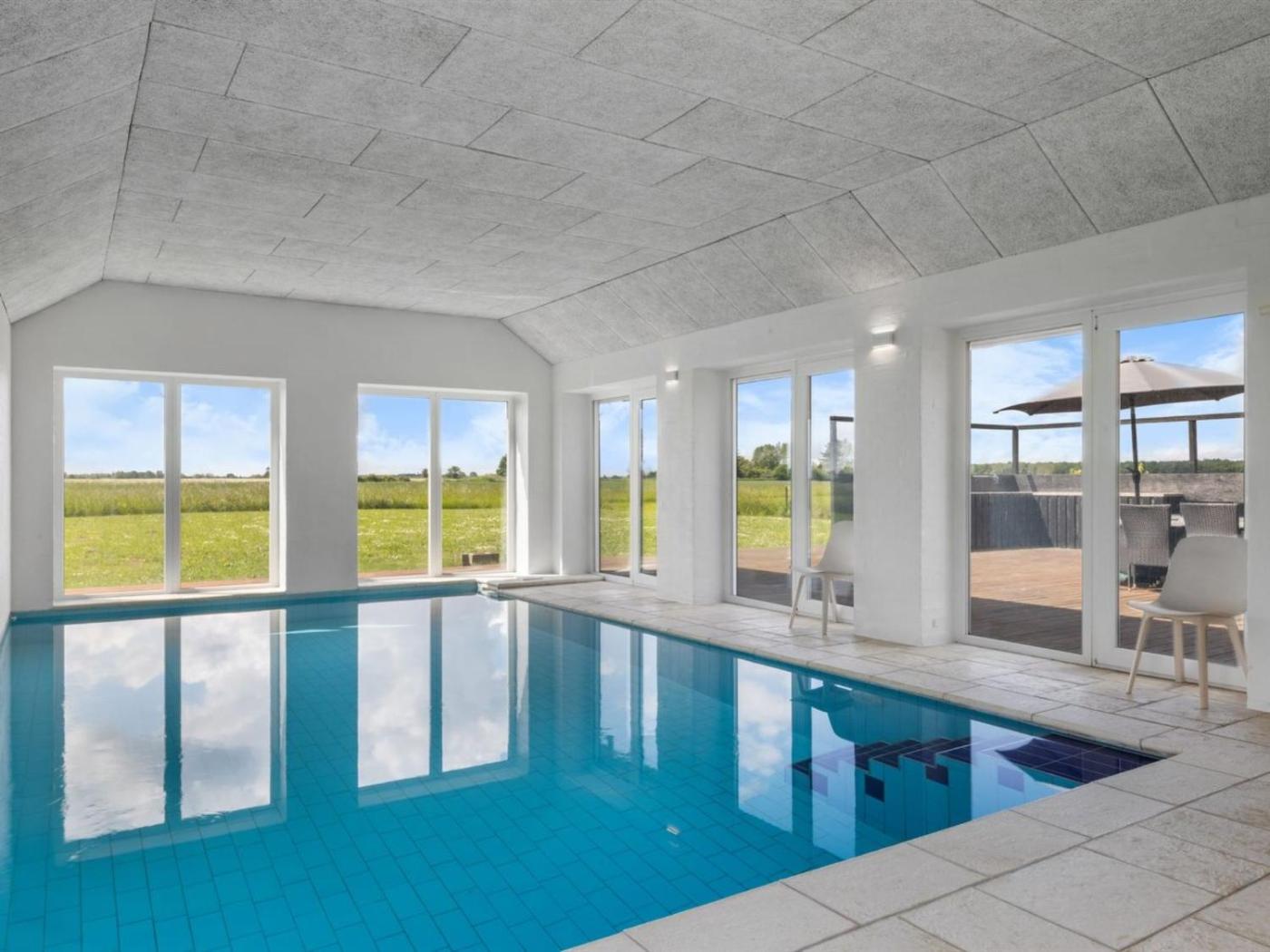 The holiday home also offers an indoor pool and a sauna for guests to relax in.