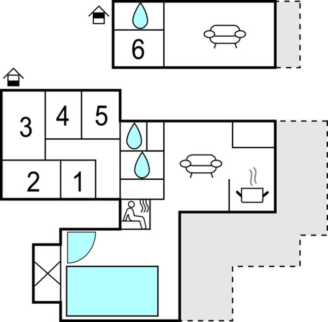 Seven-Bedroom Holiday Home. Guests will have a special experience as this holiday home offers a private pool, a hot tub and a sauna. Featuring a private entrance, this spacious holiday home also comprises 6 separate bedrooms and 3 bathrooms with a bath and a shower. Guests will find a stovetop, a refrigerator, a dishwasher and kitchenware in the well-fitted kitchen. The holiday home also provides guests with a barbecue. Boasting outdoor furniture, this holiday home also provides a washing machine, a tea and coffee maker and a TV. The unit offers 13 beds.